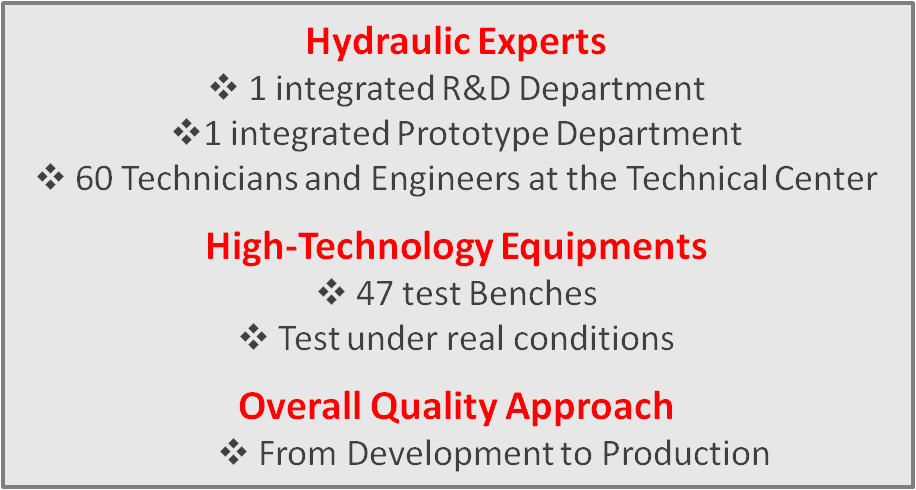 All new products are tested on applications to validate feasibility, using dedicated benches allowing our products to experience all vibratory, hydraulic, climatic, and electric constraints under real conditions.